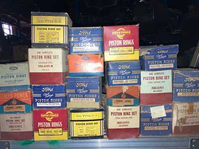 Pistonrings sets vintage NOS US car. We carry a large inventory with focus on 1930-40-50 US engines. There is a lot of Ford and all is NOS -nothing new/made "today" -have a look at the "grand" boxes -beauties by themselves. All Ford flat heads including 60HP and 6-cylinder engines